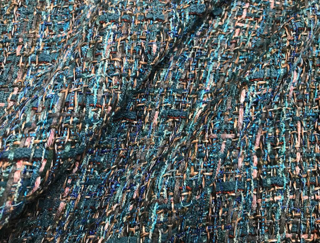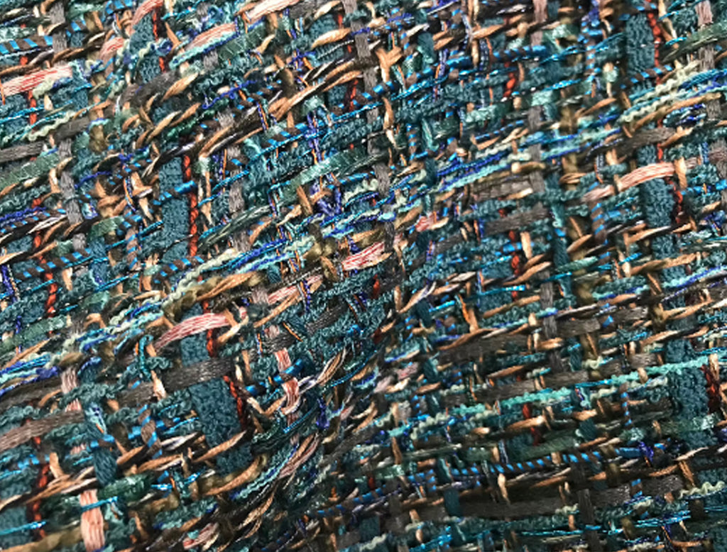 Shades of Blue/Teal/Tans - French Tweed - 150 cm Wide.