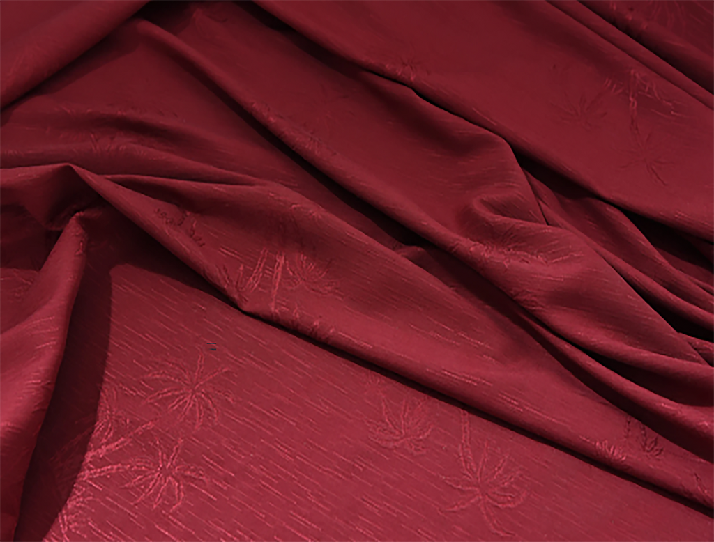 Burgundy Silk Jacquard - Palms Print - 114 cm Wide, Imported.