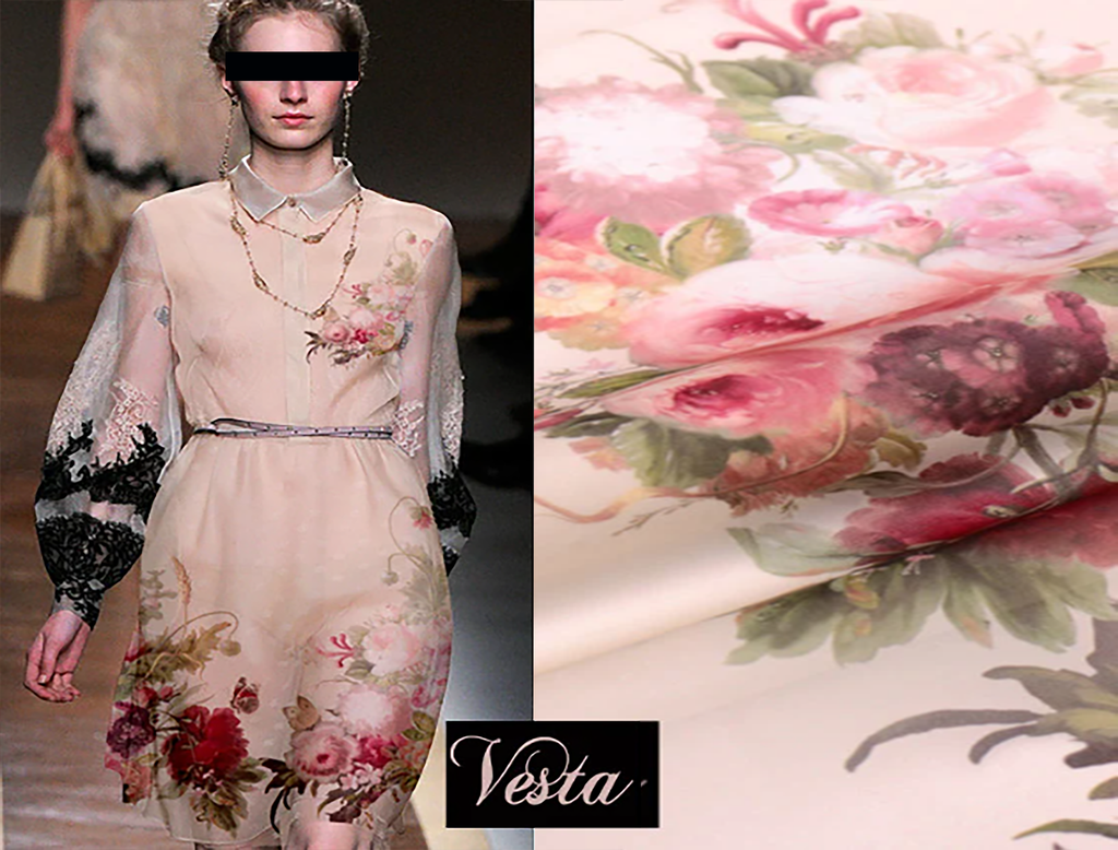 Floral Print on Natural Beige Silk Organza, 100% Mulberry Silk Organza, Imported.