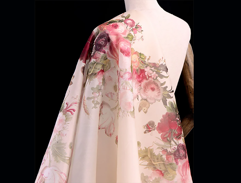 Floral Print on Natural Beige Silk Organza, 100% Mulberry Silk, 20 MM.