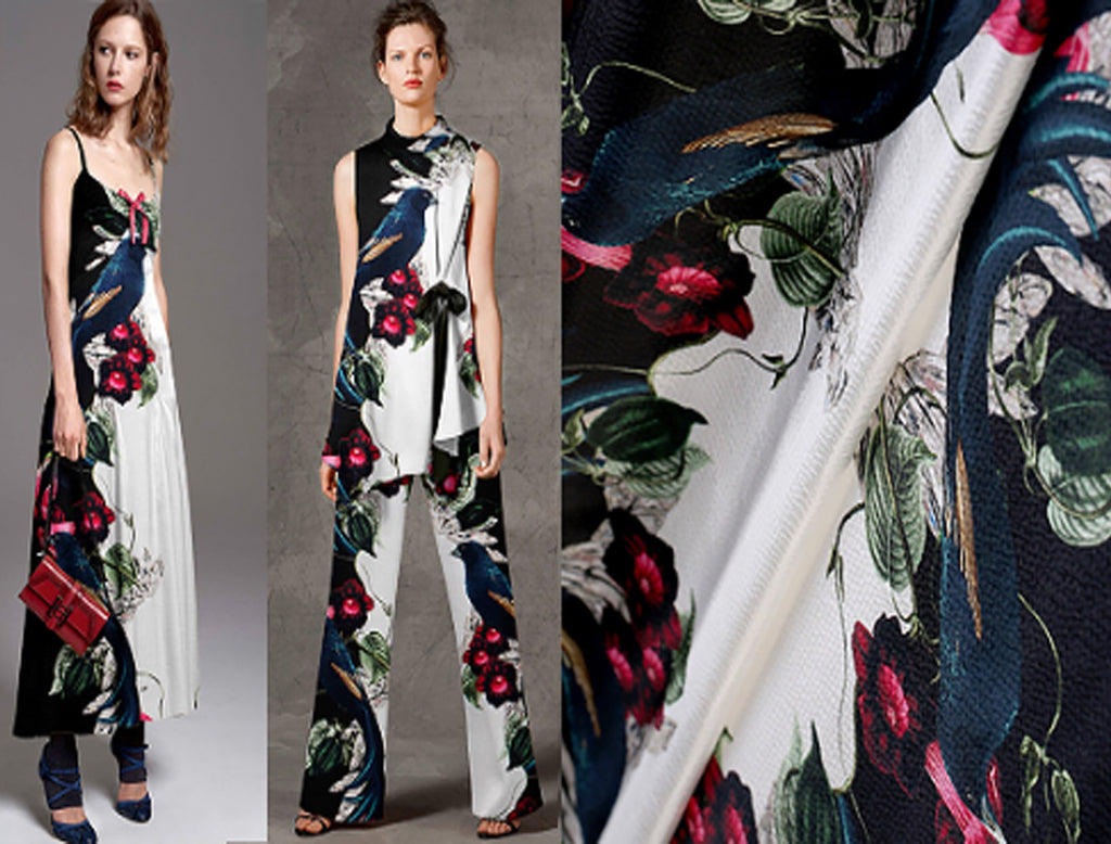 Multi Color Floral on White Background Stretch Satin- Positions of: 125 cm Width x 84 cm Length.