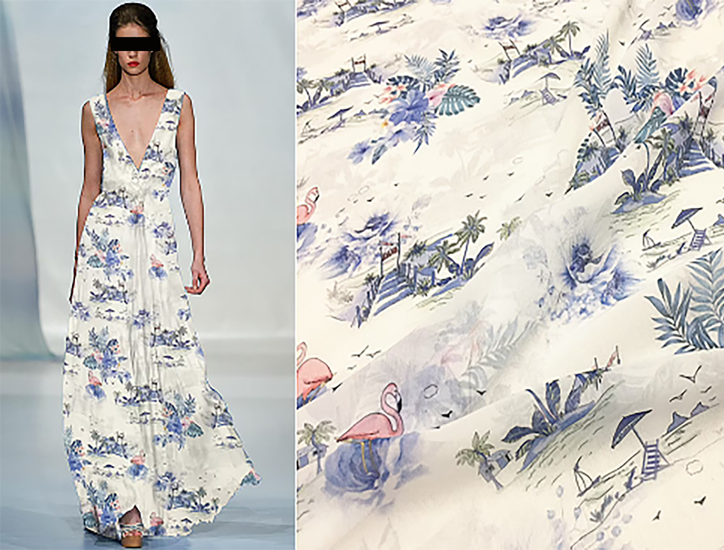 Soft Shades of Blue and Pink Print on Natural White Silk -  Silk Georgette - 12 MM - 140 cm Wide.