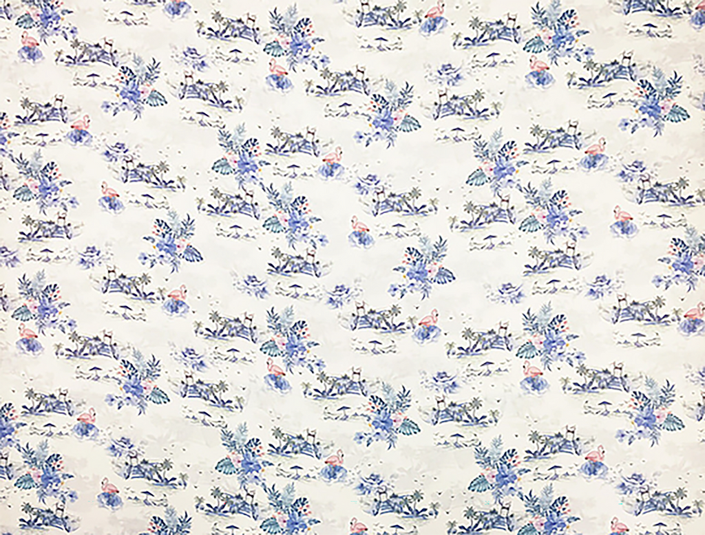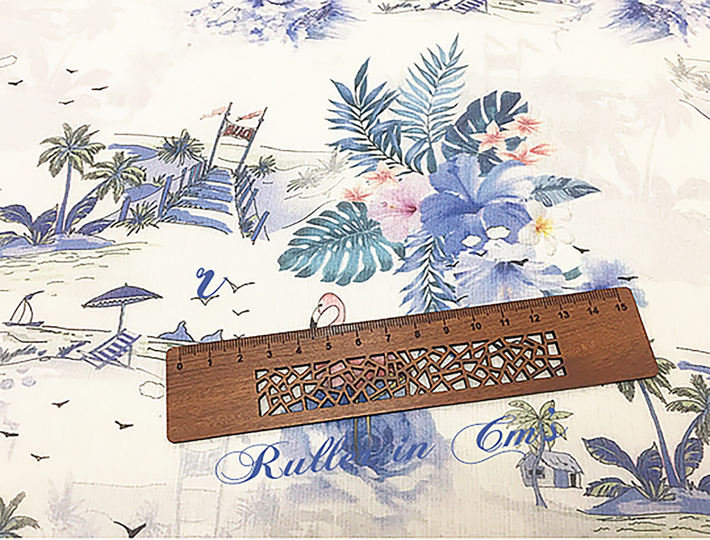 Soft Shades of Blue and Pink Print on Natural White Silk - Silk Georgette - 12 MM - 140 cm Wide.