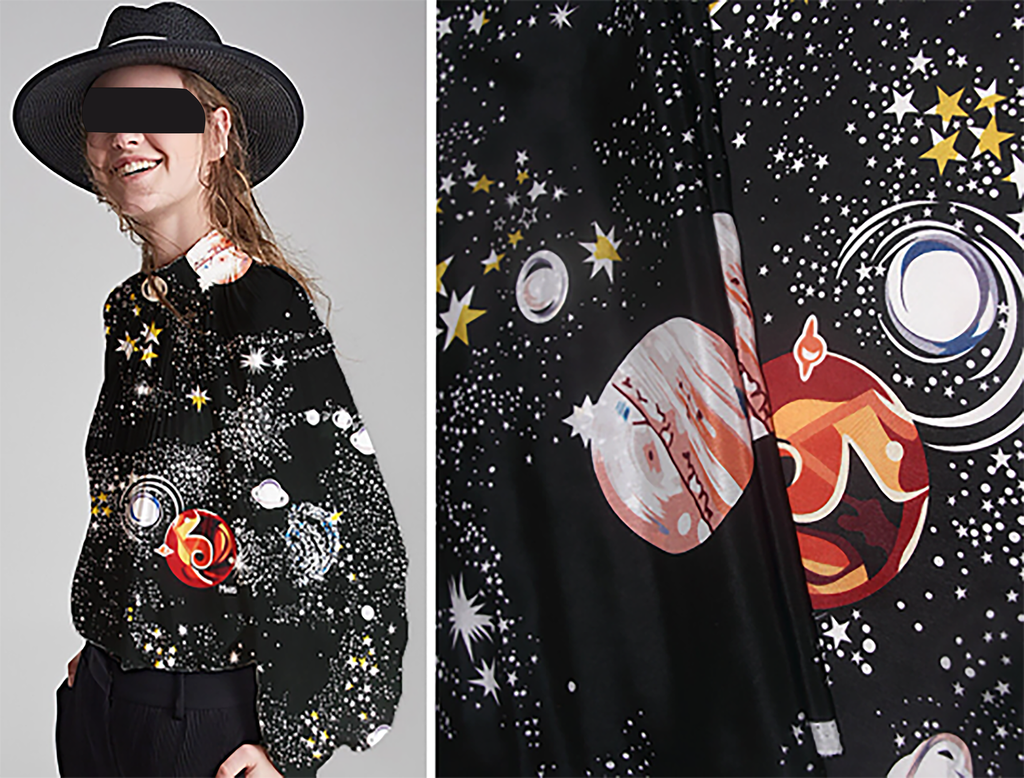 Starry Night Print on Black Background - Mulberry Silk Double Crepe de Chine, 16 mm - 108 cm Wide