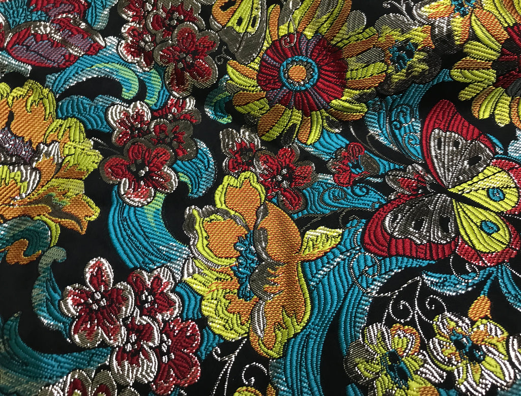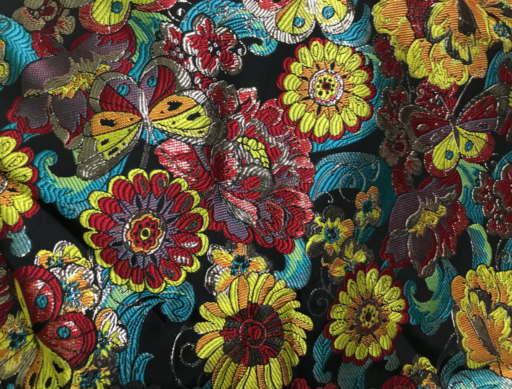 Multi Color Floral on Black Background - Italian Jacquard Fabric - 145 cm Wide
