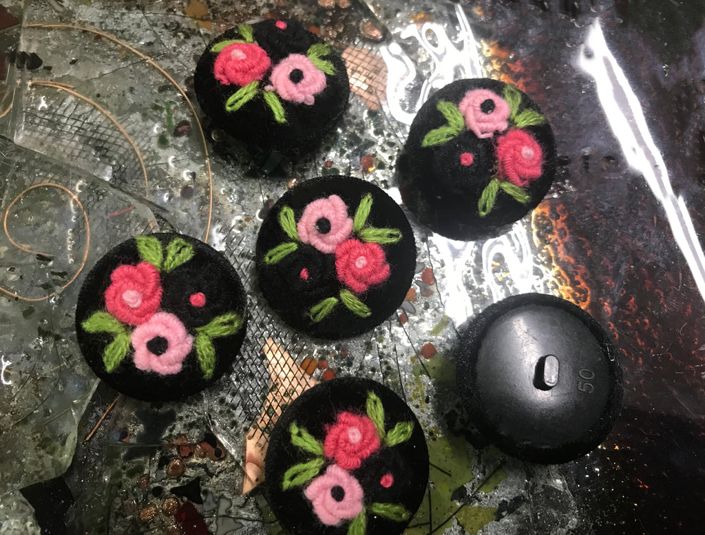 Black Velvet Hand-Made - Embroidered Button - 34 MM Width.