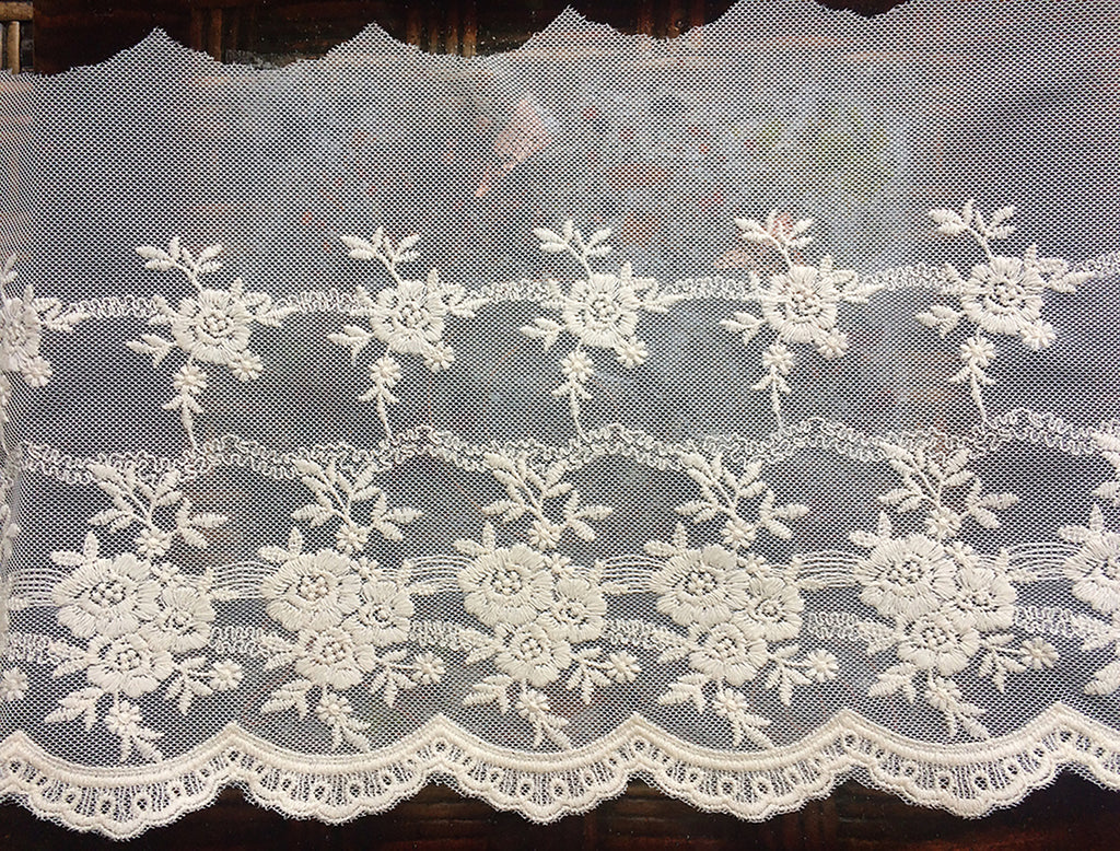 Beige - Embroidered Soft Tulle Lace - 21 cm Wide. Imported.