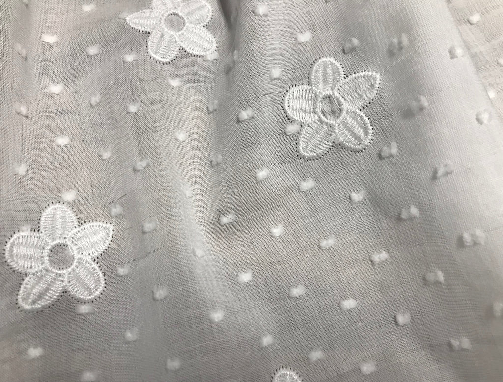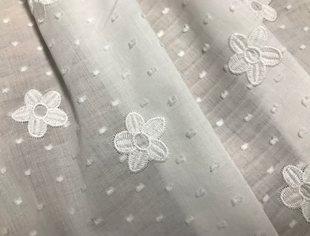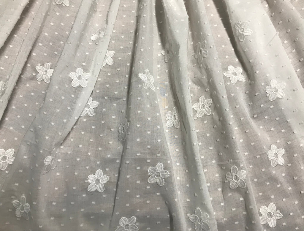 White All Over Embroidery - Broderie Anglaise on SwissWhite All Over Embroidery and Swiss Dot - Broderie Anglaise on Swiss Cotton Voile - 138 cm Wide. Cotton Voile - 138 cm Wide.