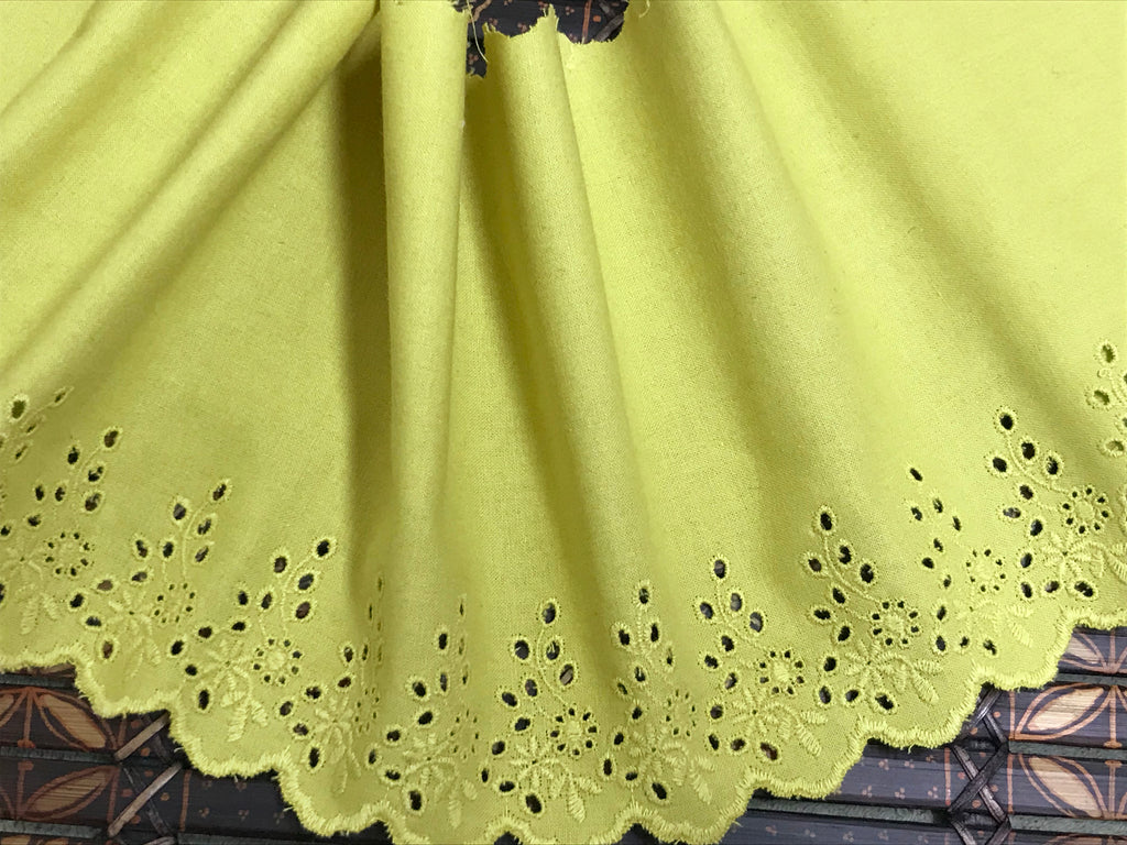 Avocado Green Broiderie Anglaise -  Poplin Cotton - 17 cm Wide.
