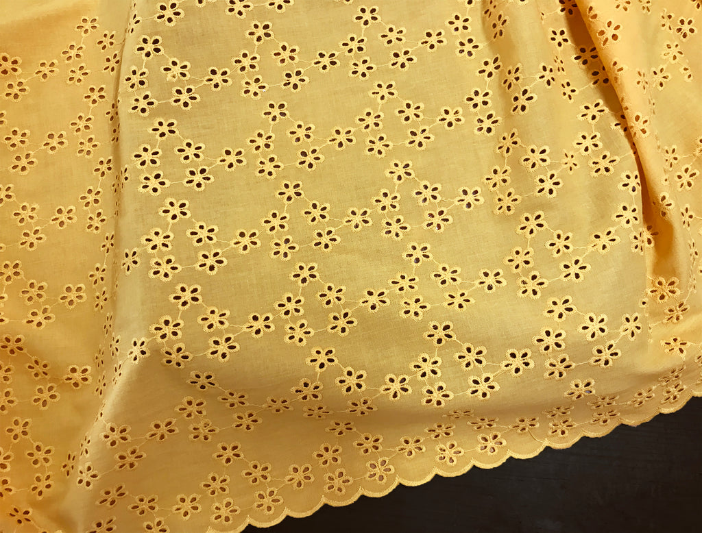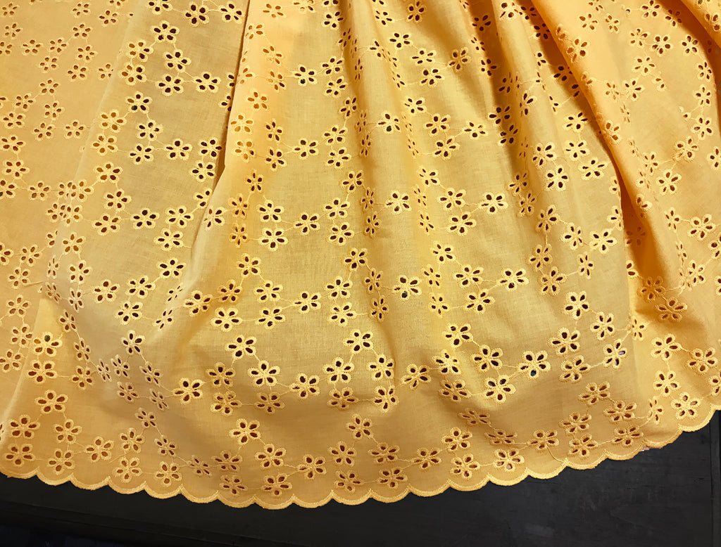 Marigot Yellow Embroidery - Broderie Anglaise - On Cotton Voile - 52 cm Wide.
