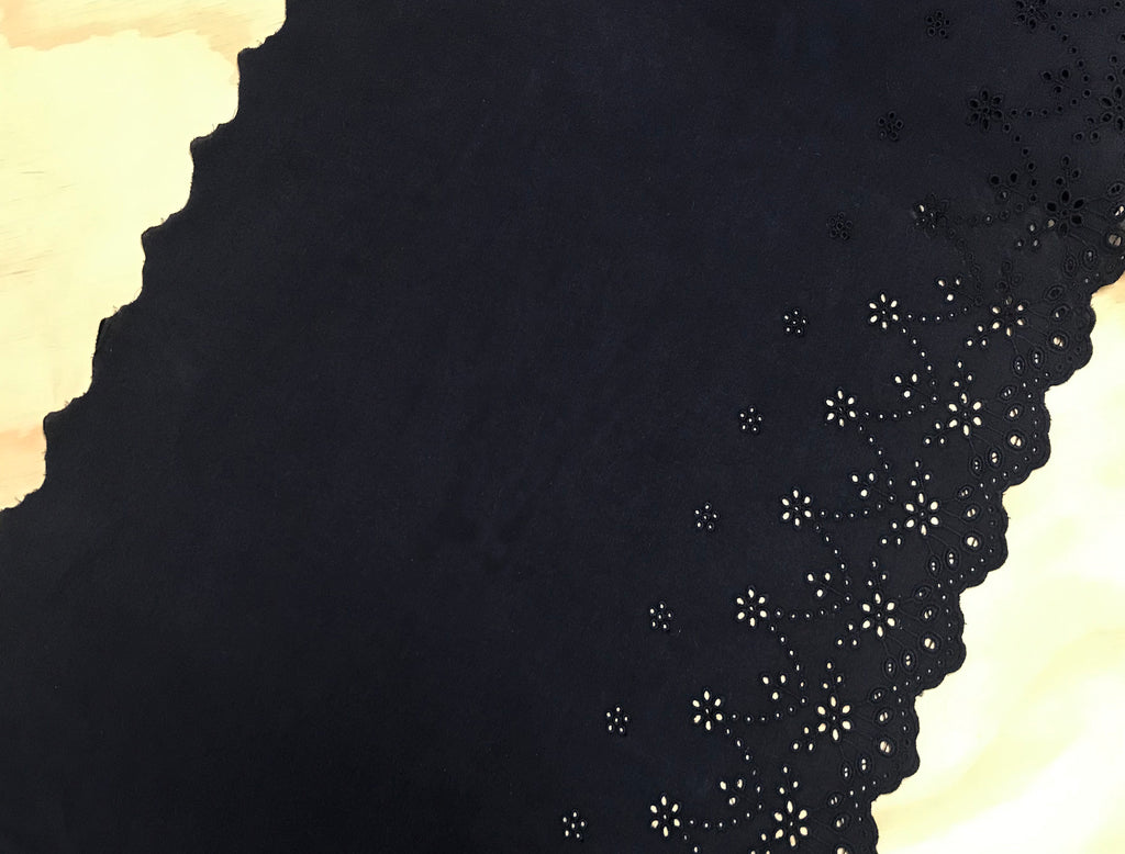 Mid Night Blue Cotton Voile - Broderie Anglaise Lace - 46 cm Wide.