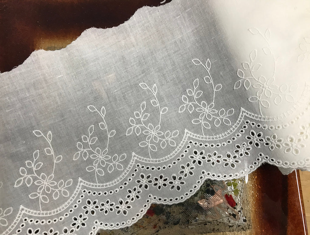 Natural White Floral embroidery - Broderie Anglaise Lace on Natural Natural White Cotton Voile - 18 cm Wide.