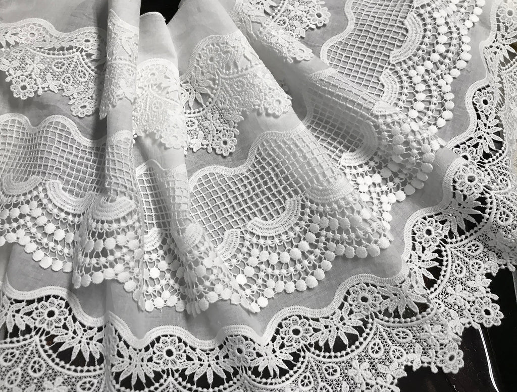 White 3 Tears Broderie Anglaise on Swiss Voile - 34 cm Wide, Imported.