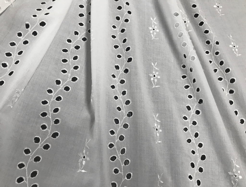 Natural White All Over Shinny Embroidery -  Broderie Anglaise on Swiss Voile -  150 cm Wide.