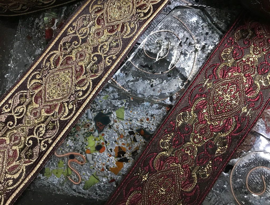 Multi Color - Embroidered Jacquard Ribbon - 5 cm Wide, IN 2 Colors