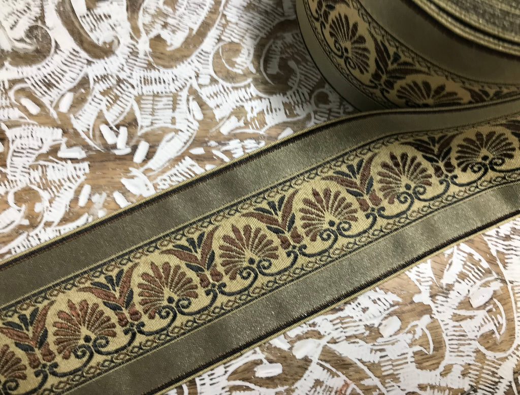 Multi Color - Embroidered Velvet Jacquard Ribbon - in Tree Colors and Tree Width