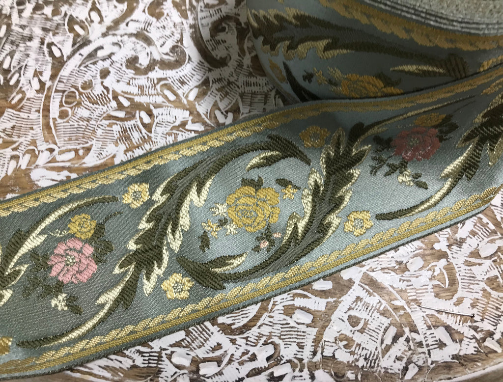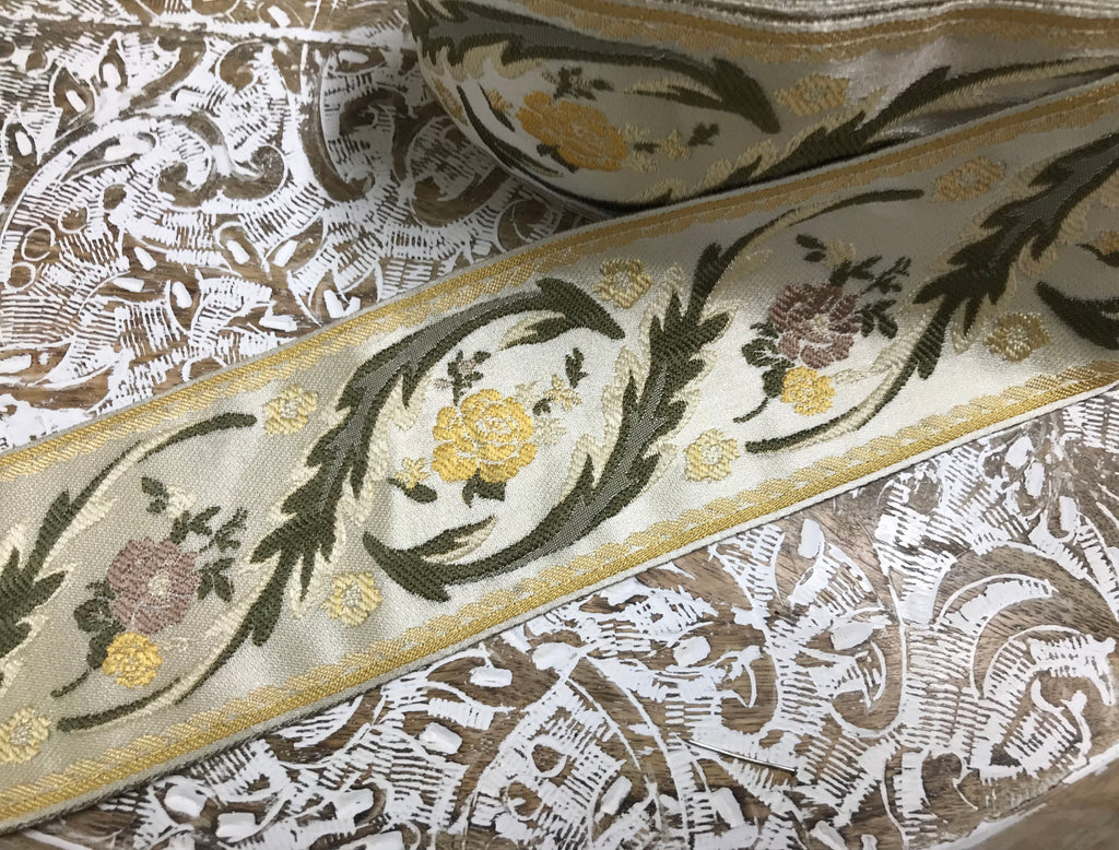 Multi Color - Embroidered Velvet Jacquard Ribbon - in Four Colors - 8.5 cm Width.