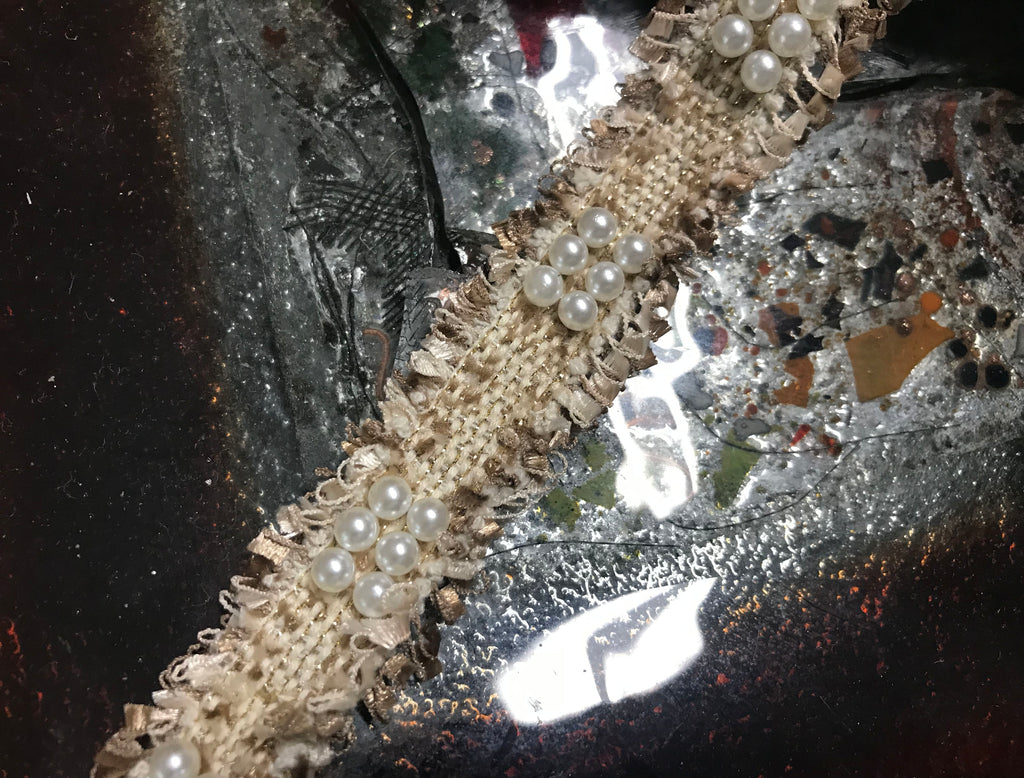Shades Beige/Tan w/Gold Stitching and Pearl Studs - Handmade French Braided Trim - 3 cm Wide.