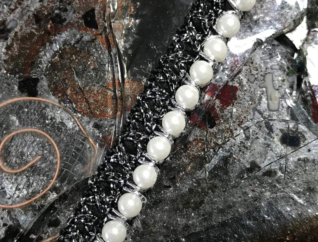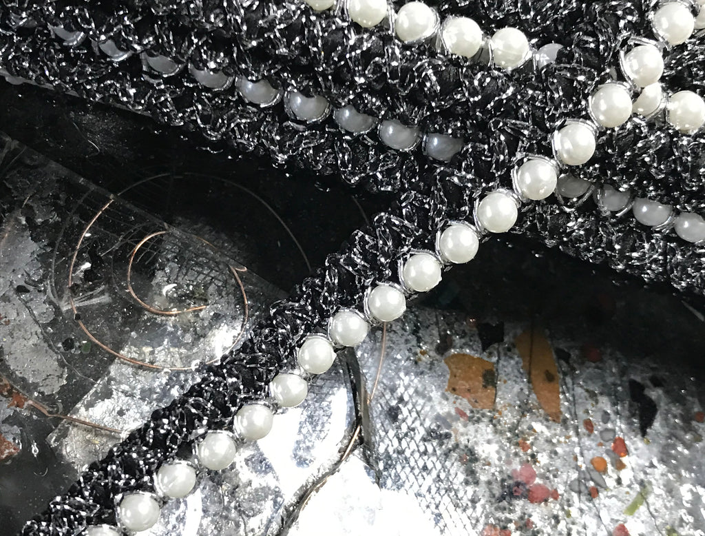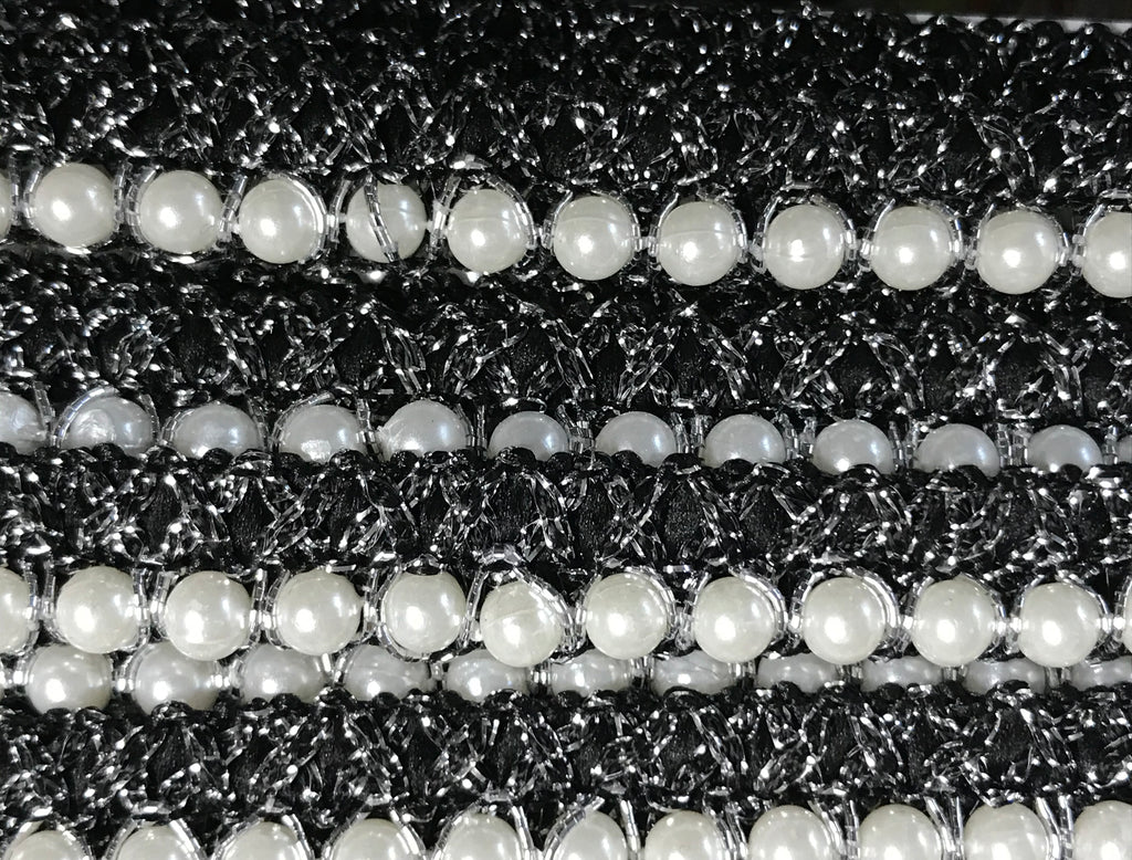Black and Silver w/Pearls - French Trim - 1.5 cm Wide.