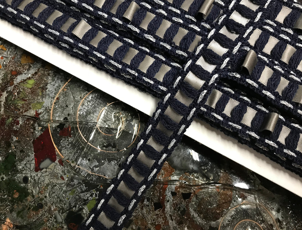 MidNight Blue w/Grey Laced Ribbon -  French Braid Trim - 2cm Wide.