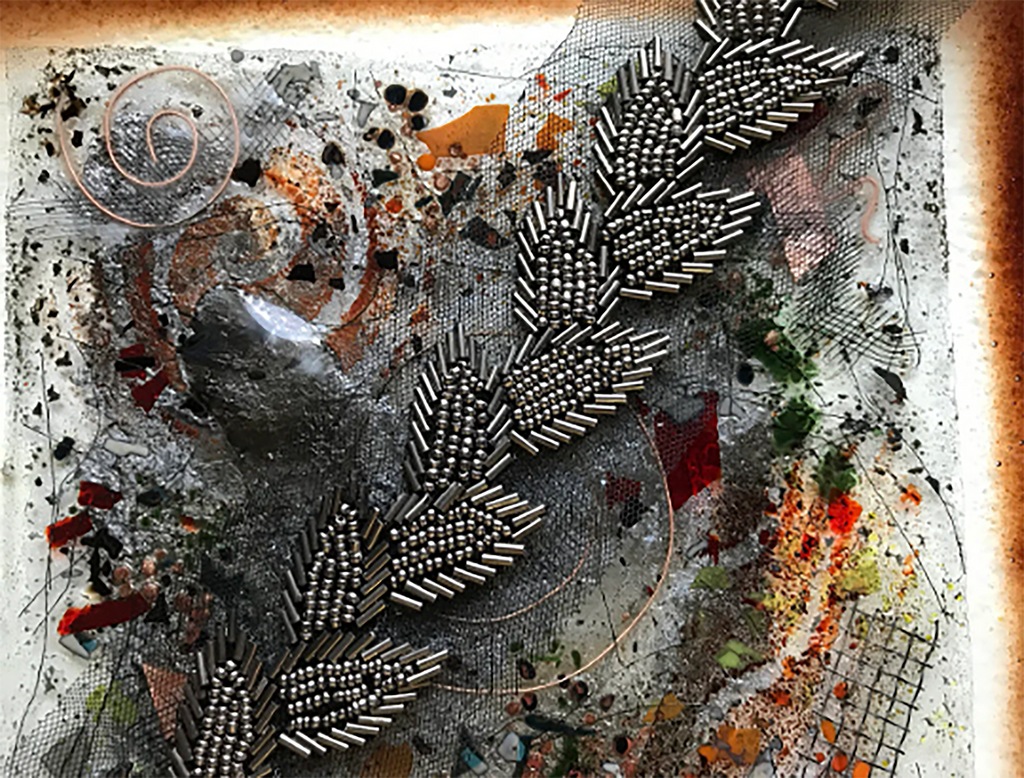 Gun Powder on Black Tulle - Handmade Beaded French Trim -1 6/8" Wide.