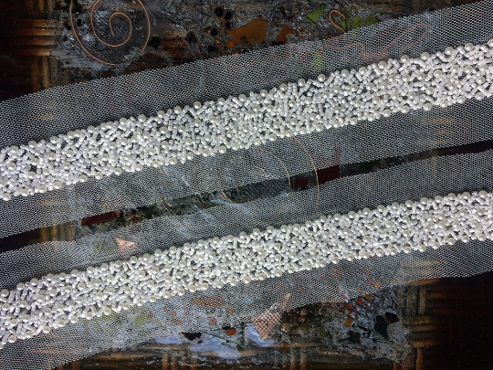 Milk White Glass Beads on Netting - Hand Made 3.5 cm Wide Trim.