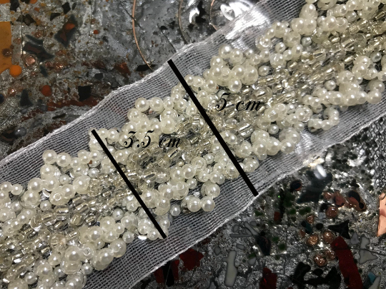 Off White Pearls and Glass Beads - Beaded Hand Made Trim - 5 cm Wide.