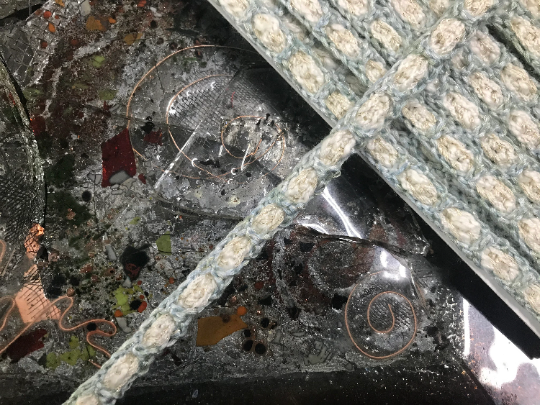Pale Blue/Off White w/Gold Thread - Hand Made Crocheted French Braided Trim - 1.50 cm Wide