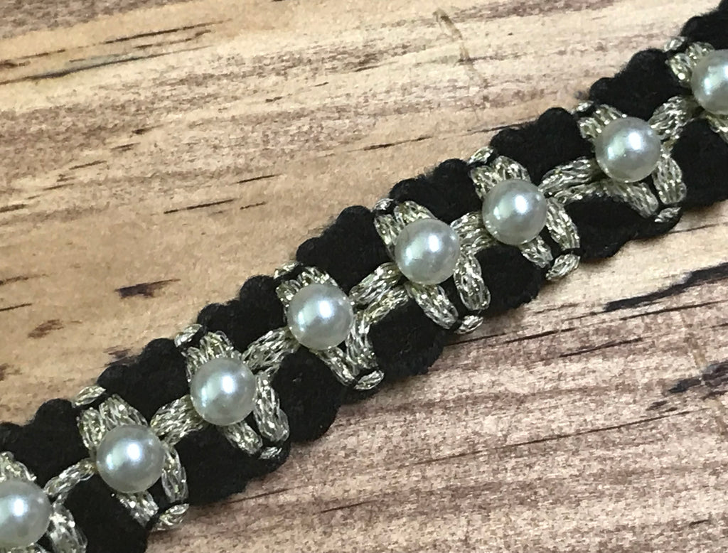 Pearl and w/Gold Thread on Black Background - 6/8" Wide.
