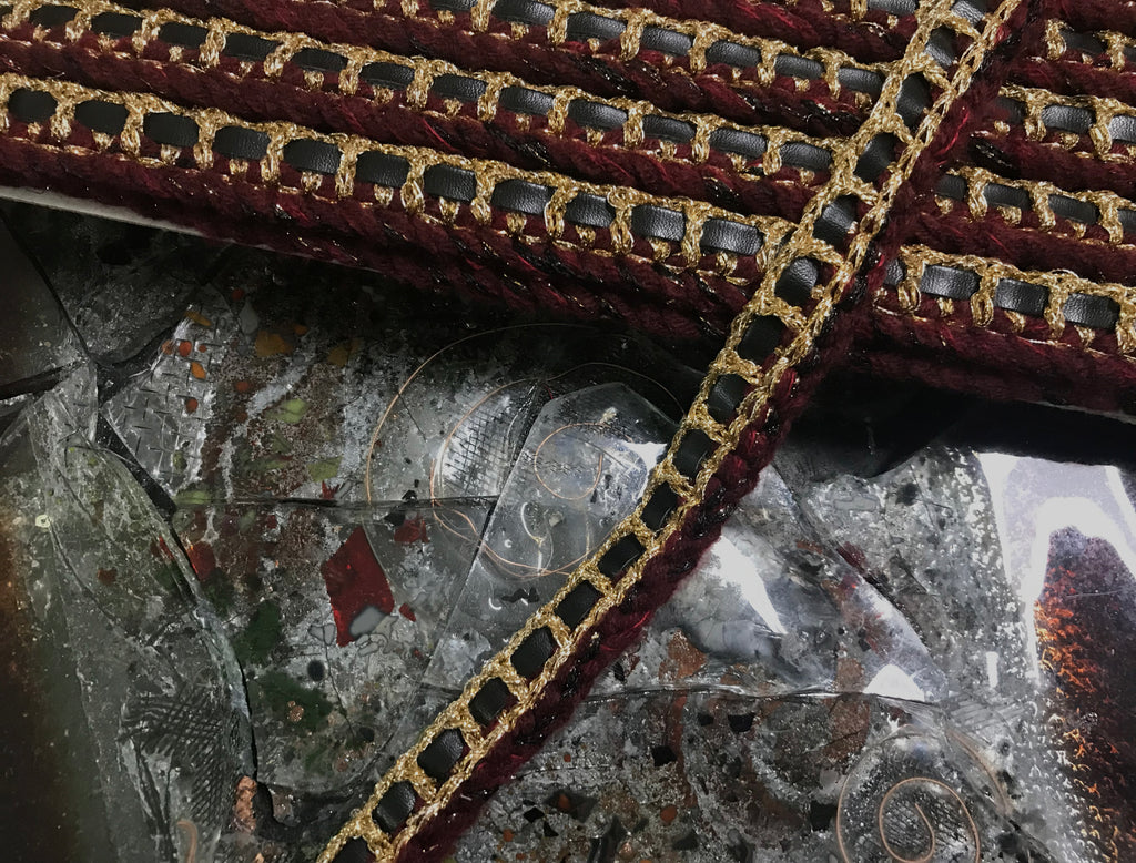 Burgundy/Black Gold- Hand Made French Braided Trim - 2 cm Wide.