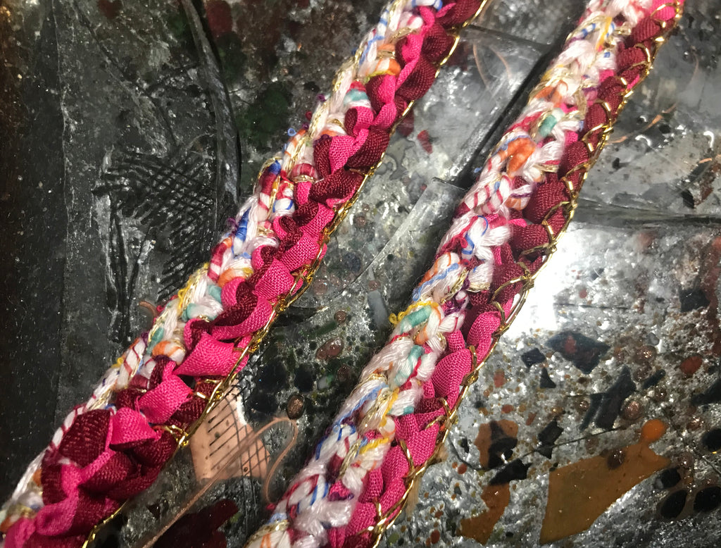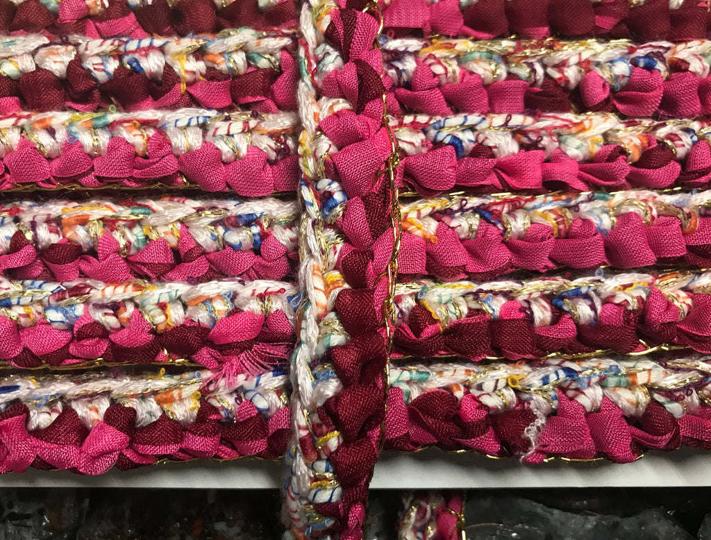 Shades of Red/Pink/Tans/Gold Handmade Crocheted French Braid Trim - 6/8" Wide.