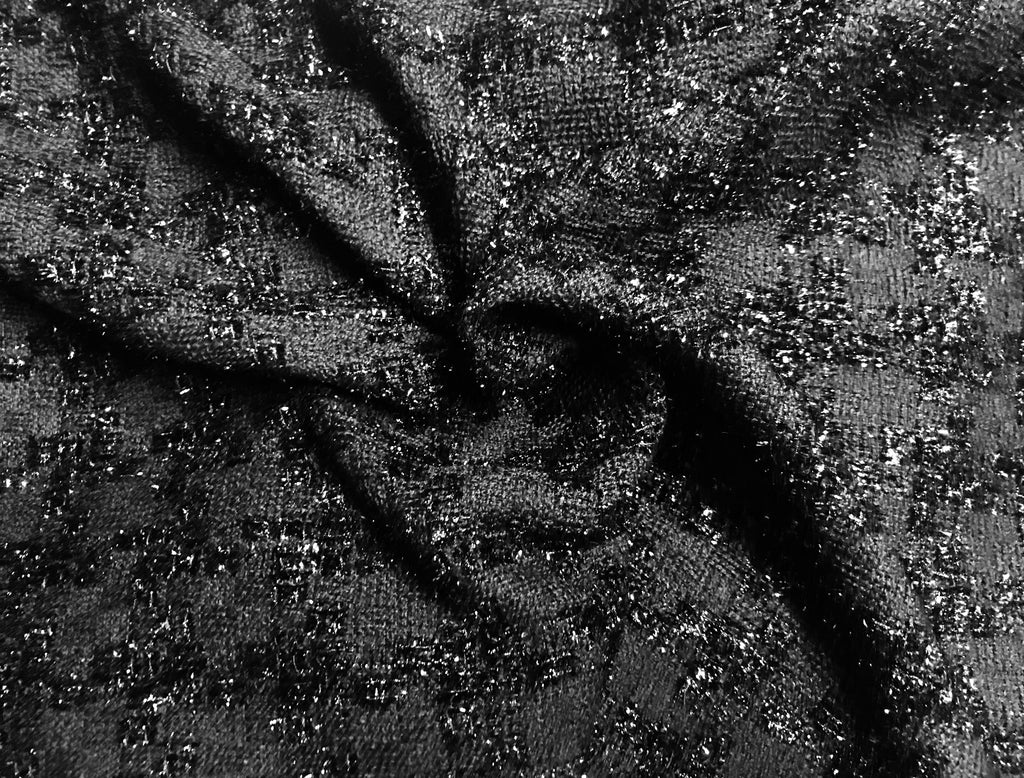 Black on Black - Houndstooth Pattern - French Tweed - 150 cm Wide.