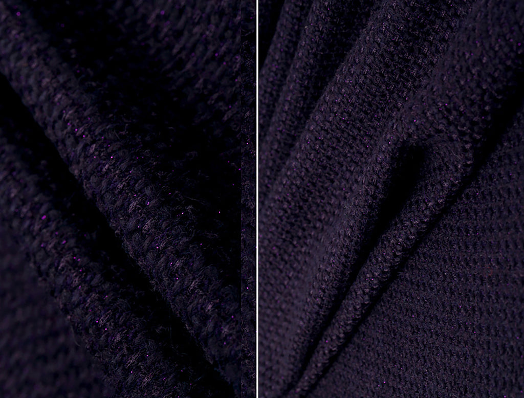 Shimmering Eggplant Purple w/Shiny Speckles - Italian Tweed - 156 cm Wide.