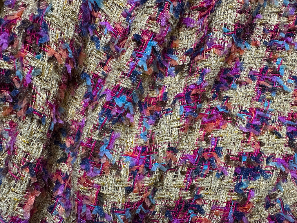 Multi Color Ribbons on a Checkered Pattern w/Gold Metallic Threads - Double Faced French Tweed - 154 cm Wide.