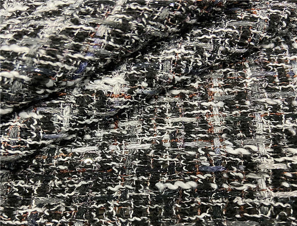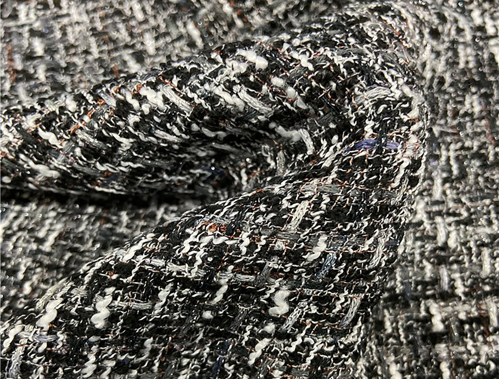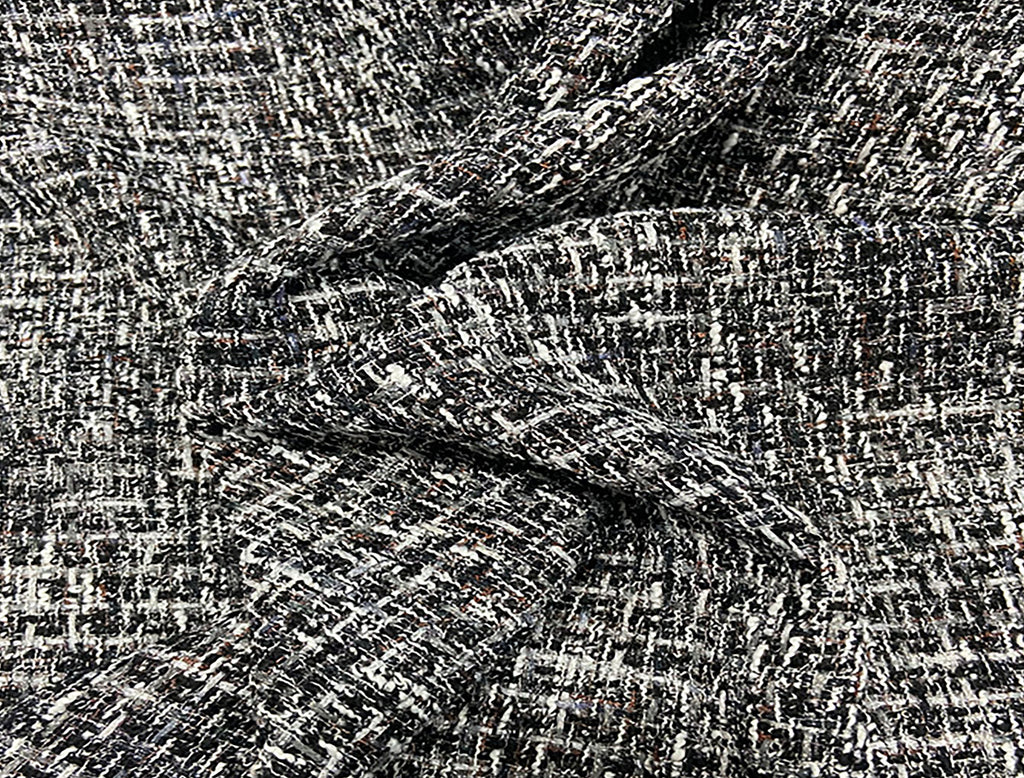 Shades of Grey/Black/Off White/Tan/Purple - French Tweed - 150 cm Wide.