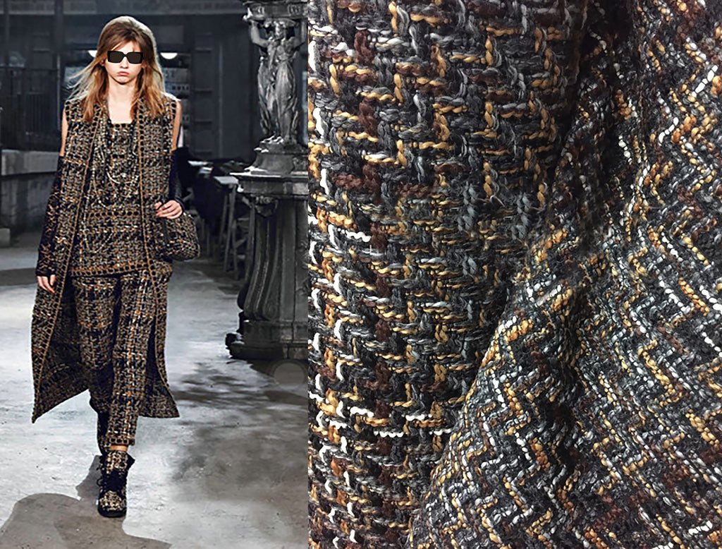 Shades of Brown/Gold/Grey/White/Black - French Tweed - 152 cm Wide.