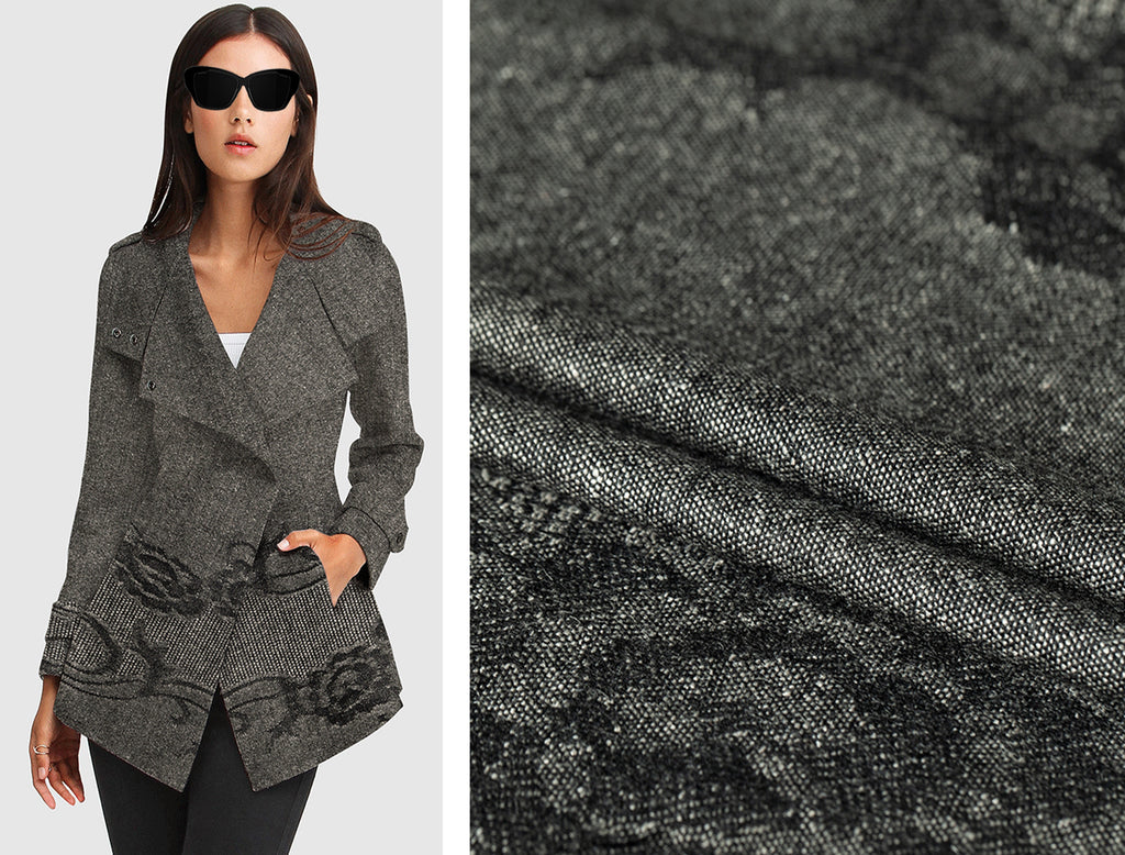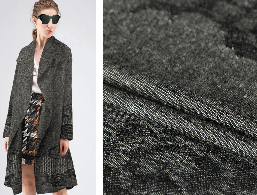 Gorgeous Pattern Grey/Black/Off White - Italian Fine Wool Jacquard - 120 cm Length x 150 cm Width.