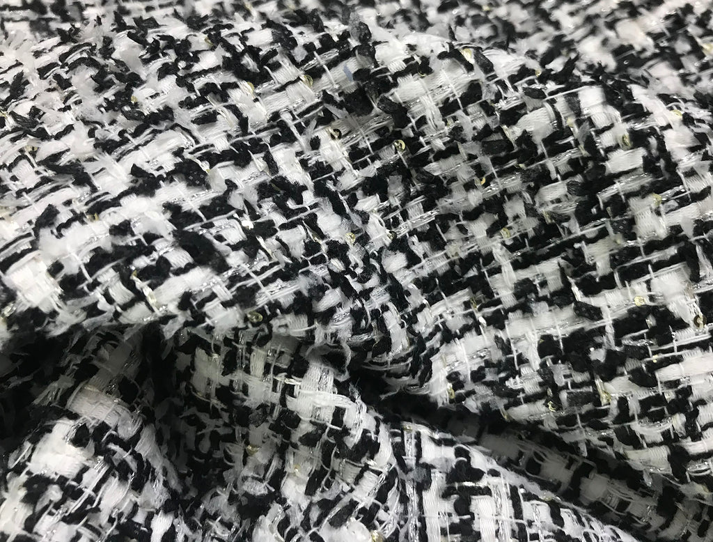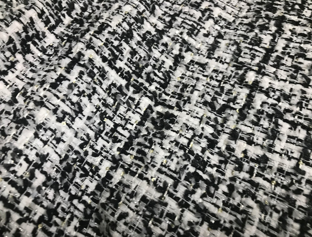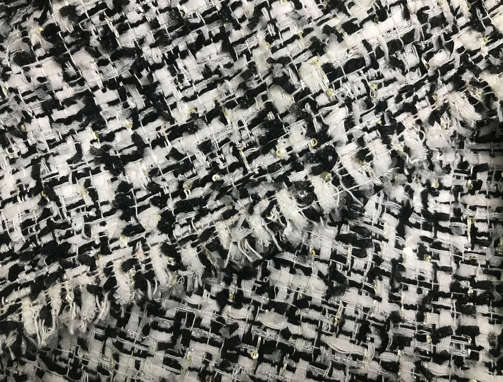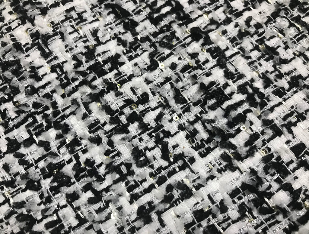 Black/ White  with Small Silver Sequins - French Tweed - 152 cm Wide.