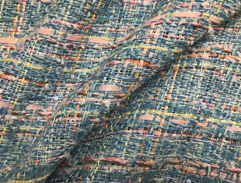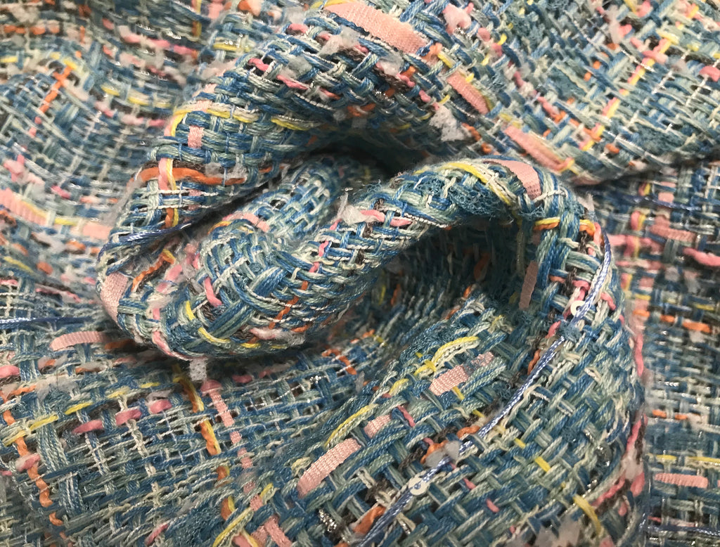 Perfect for Spring, Soft Multi Color w/Pink Ribbons - French Tweed - 150 Wide.